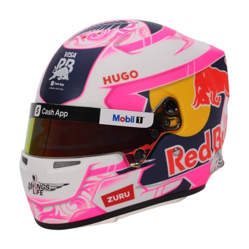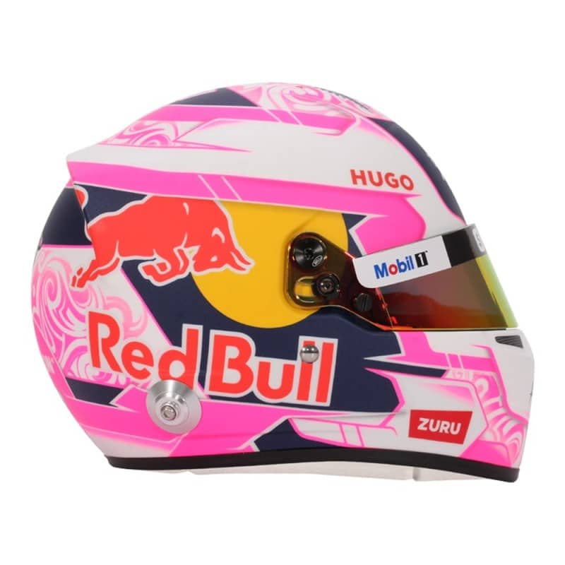 With one of the most distinctive designs on the 2025 Formula 1 grid, Liam Lawson’s helmet makes a statement with its vibrant pink and white livery – a modern tribute to his New Zealand roots. Inspired by his homeland, Lawson’s helmet features a bold pink and white combination, along with national symbols that reflect New Zealand’s cultural pride: Maori motifs, the silver fern, and the stars of the Southern Cross. A striking and meaningful design that stands out on and off the track. There is high-quality detailing around the HANS device clips, adjustable visor and chin straps.
